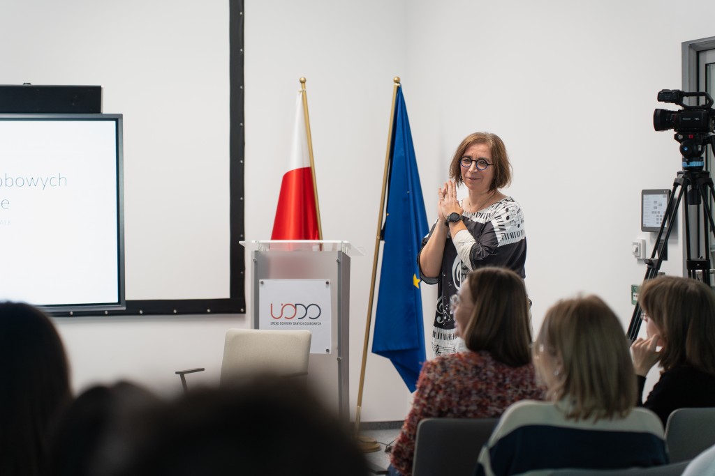 Wykład dla uczestników poprowadziła zastępczyni Prezesa Urzędu Ochrony Danych Osobowych, dr hab. Agnieszka Grzelak prof. ALK, która przybliżyła zadania i strukturę UODO, omówiła genezę dualizmu prawnego w zakresie aktów prawnych UE (RODO i dyrektywa policyjna) oraz wskazała na rolę Prezesa UODO w tym systemie.