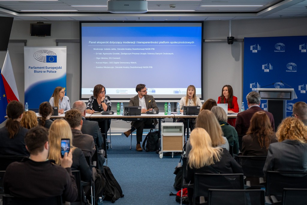 Konferencja była okazją do omówienia kluczowych wniosków płynących z raportu, a także do rozmowy o aktualnych wyzwaniach związanych z przeciwdziałaniem dezinformacji w przestrzeni cyfrowej. W ramach wydarzenia zastępczyni Prezesa Urzędu Ochrony Danych Osobowych dr hab. Agnieszka Grzelak wzięła udział w panelu dyskusyjnym poświęconym moderacji oraz transparentności platform społecznościowych.