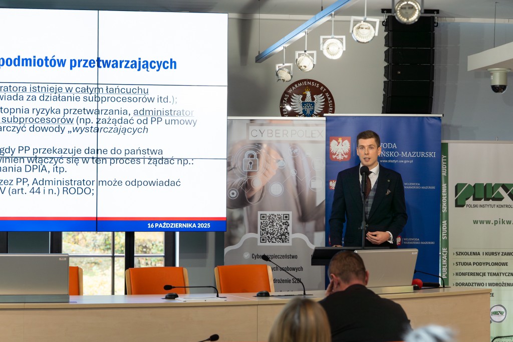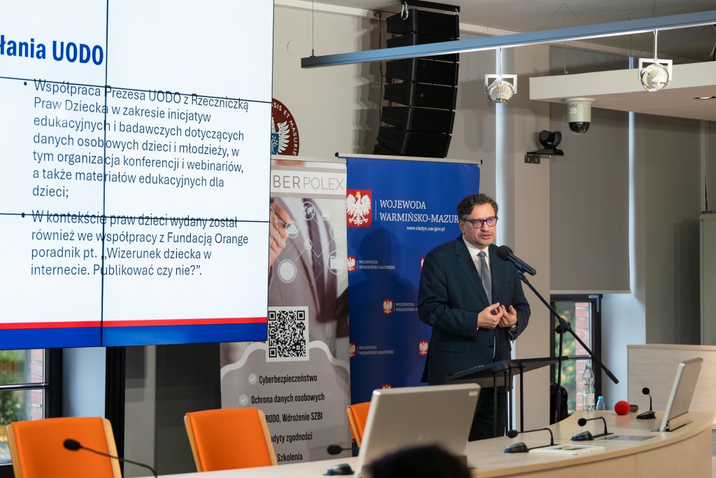 Wizyta w województwie warmińsko – mazurskim obejmowała konferencję naukową na Uniwersytecie Warmińsko – Mazurskim, a także warsztaty, szkolenia i indywidualne porady prawne z zakresu ochrony danych osobowych i cyberbezpieczeństwa. Wydarzenie zrealizowano we współpracy z Wydziałem Prawa i Administracji UWM oraz lokalnymi partnerami społecznymi i samorządowymi. Tematem przewodnim była „Higiena cyfrowa i bezpieczeństwo danych w sieci”. Eksperci podczas konferencji podkreślili, że powszechny dostęp do interentu i mediów społecznościowych wymaga od użytkowników większej ostrożności w udostępnianiu informacji o sobie i swoich bliskich.