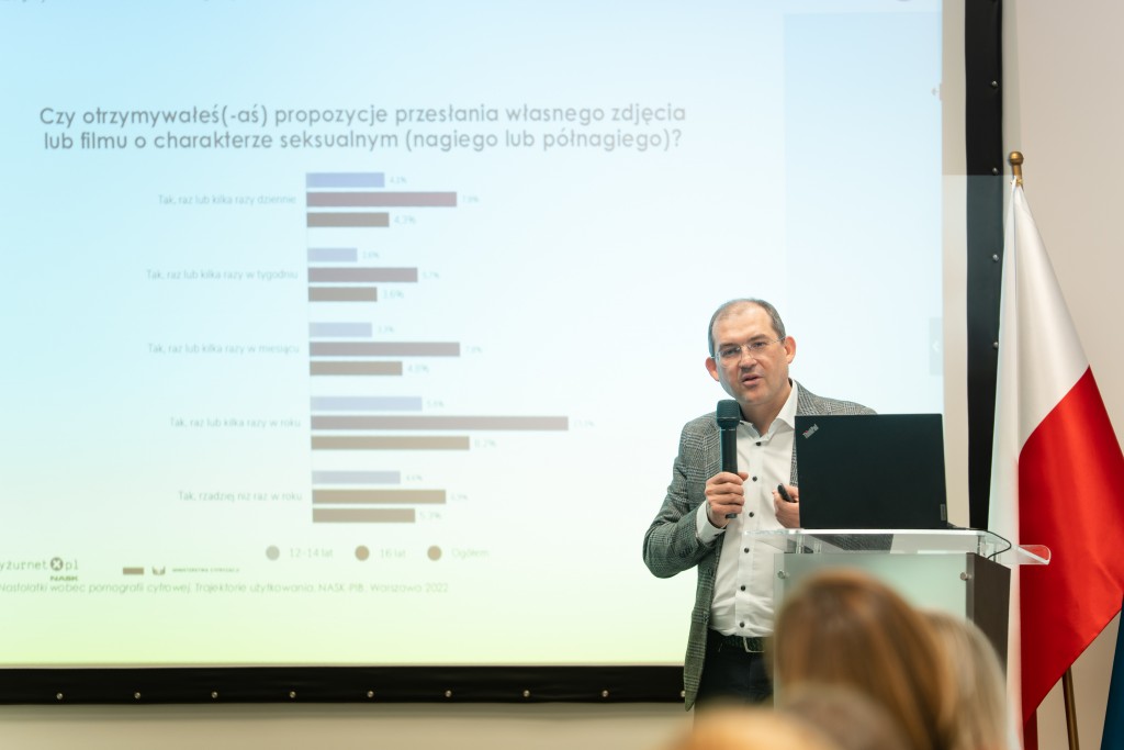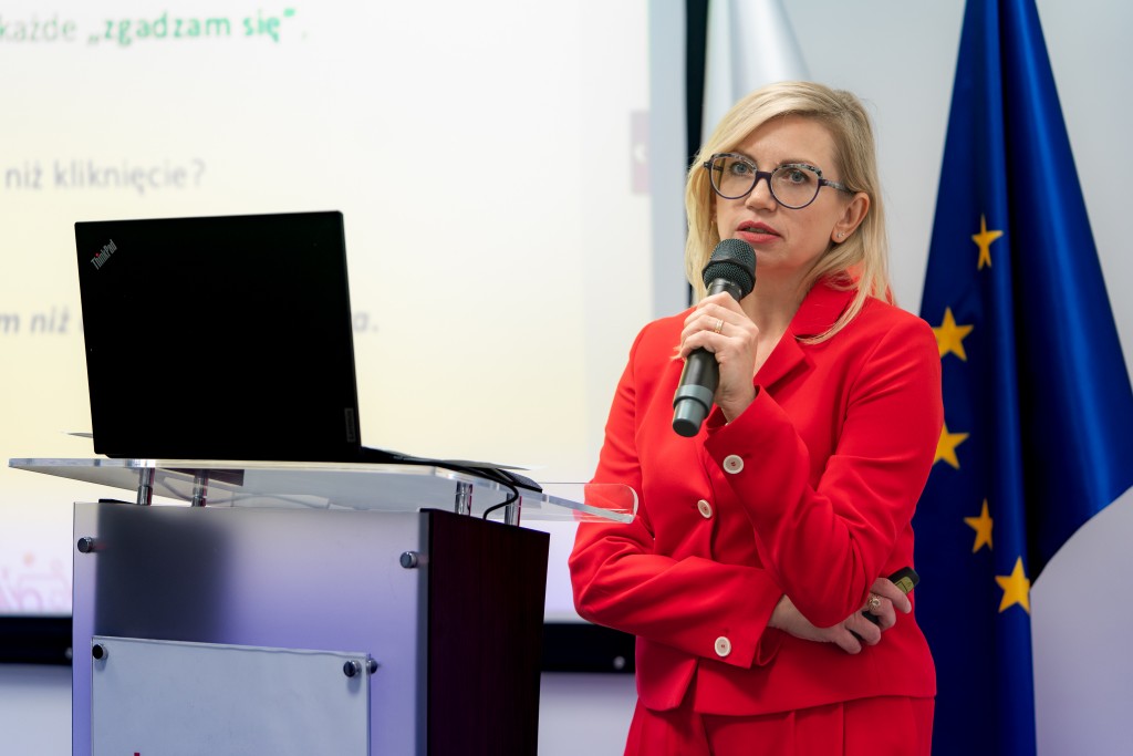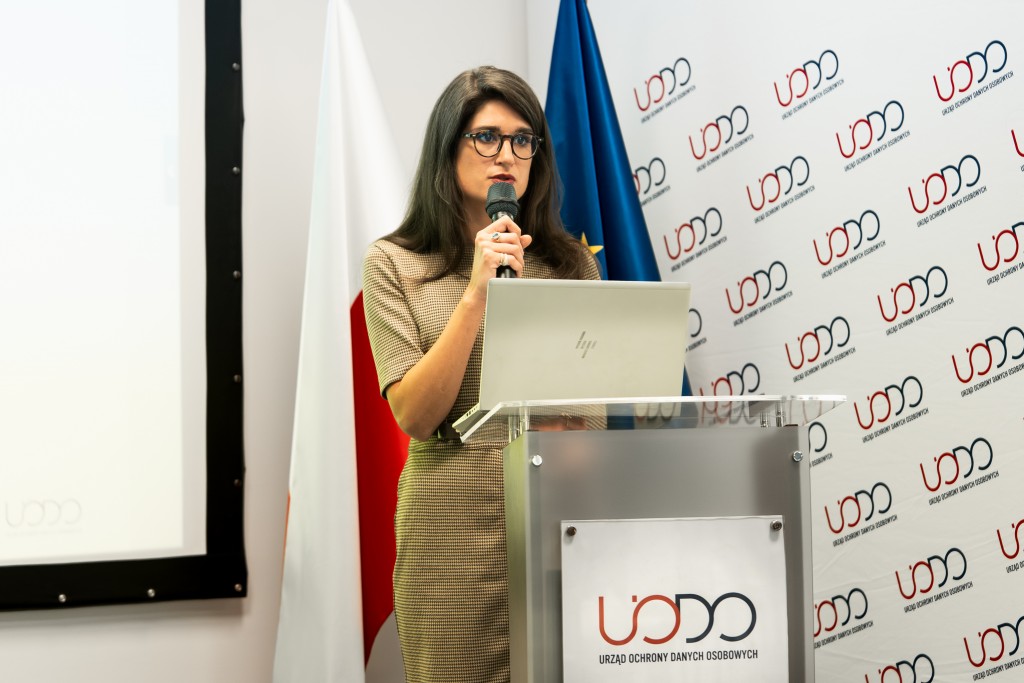 Paulina Dawidczyk, dyrektor Departamentu Skarg UODO, zaprezentowała dobre praktyki dotyczące przetwarzania danych w szkołach, zwracając uwagę na ochronę wizerunku uczniów w sieci, na zasady publikowania materiałów szkolnych oraz na bezpieczeństwo systemów elektronicznych. W dalszej części Piotr Otrębski z Ministerstwa Edukacji Narodowej przedstawił działania MEN w zakresie edukacji o danych osobowych, omawiając włączenie tych treści do programów nauczania. Podkreślił znaczenie współpracy między szkołami, urzędami i organizacjami społecznymi. Z kolei r. pr. Maciej Groń z NASK poruszył temat nadużyć związanych z udostępnianiem treści generowanych przez uczniów w internecie oraz kwestię odpowiedzialności nauczycieli i rodziców za edukację cyfrową. Maria Owczarek, dyrektorka Departamentu Współpracy Międzynarodowej UODO omówiła temat weryfikacji wieku użytkowników w serwisach internetowych oraz ochrony danych dzieci w grach i aplikacjach edukacyjnych.
