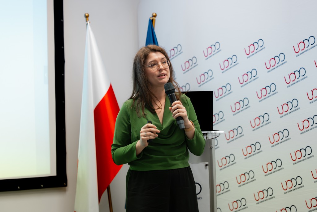 Ważnym punktem programu konferencji było wystąpienie przedstawicielek Departamentu Inicjatyw Edukacyjnych, który odpowiada za organizację działań w ramach programu „Twoje dane – Twoja sprawa”. Anna Dudkowska dyrektor Departamentu Inicjatyw Edukacyjnych UODO oraz Marta Mikołajczyk, koordynatorka programu przedstawiły założenia, plany bieżącej edycji oraz możliwe kierunki realizacji. Podkreśliły, że skuteczna edukacja o ochronie danych osobowych i prywatności dzieci wymaga przede wszystkim zaangażowania dorosłych – ich motywacji, świadomości i odpowiedzialności. Bez aktywnego udziału nauczycieli, rodziców i opiekunów nie sposób budować trwałych postaw cyfrowej odpowiedzialności. Anna Dudkowska zaznaczyła, że „temat ochrony danych osobowych może być omawiany na każdym przedmiocie w szkolnej edukacji – od języka polskiego po matematykę czy wf – oraz w ramach działań profilaktycznych. W dobie dynamicznego rozwoju technologii cyfrowych jest to nie tylko możliwe, ale konieczne”. Marta Mikołajczyk z kolei zwróciła uwagę na znaczenie inspiracji w działaniach edukacyjnych, wskazując, że ochrona danych nie powinna wynikać z lęku czy desperacji, z powodu naruszeń prywatności lecz z wewnętrznej potrzeby troski o siebie i innych.